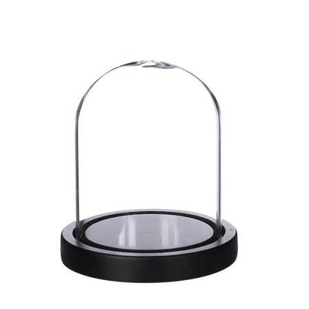 Glazen stolp met zwart houten basisvoet Ø12 H13